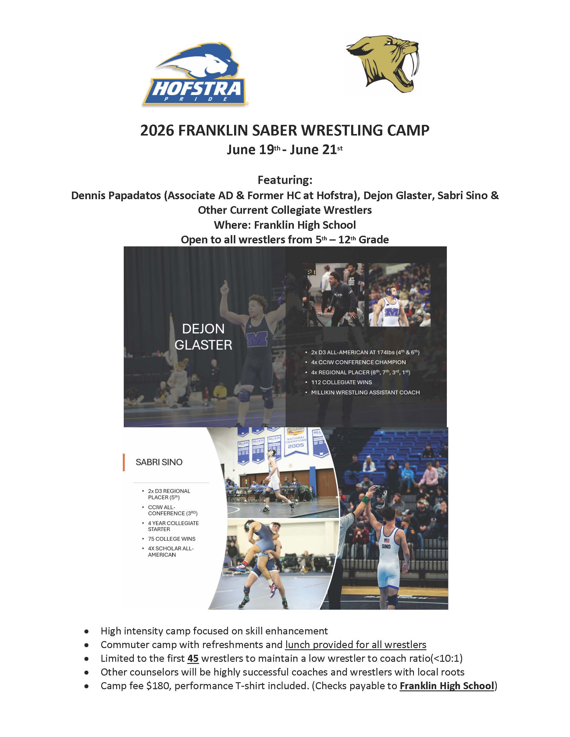The main purpose of this camp will be to provide a fun but focused atmosphere to assist wrestlers with taking their abilities to the “next level”. It will be a power packed weekend covering all aspects of wrestling including takedowns, mat wrestling, strength and conditioning, and mental toughness. Camp will include drilling, live wrestling, situational wrestling, and games meant to enhance all wrestling skills.